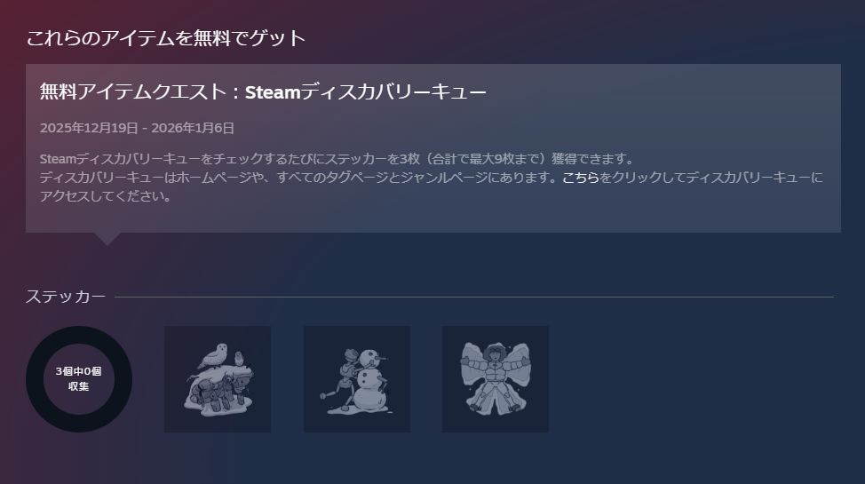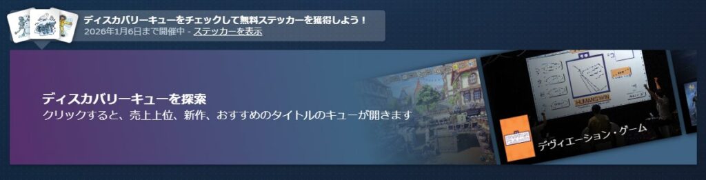 セール期間中にディスカバリーキューをチェックすることで、無料のステッカーを入手することが出来ます。
